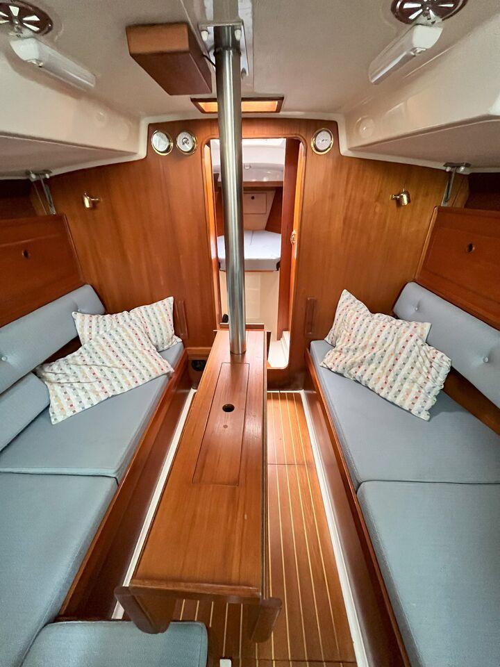 Die Victoire 933, entworfen von dem renommierten Dick Koopmans sr. und gebaut von der Victoire-Werft in Alkmaar, ist über Own Ship Yachtcharter zu mieten. Diese gut gepflegte Yacht in Volendam ist perfekt für das Mieten eines Bootes auf dem IJsselmeer, dem Markermeer und den Watten. Gebaut im Jahr 1990, wurde die Victoire 933 in den letzten Jahren nach Bedarf renoviert und mit moderner Technologie ausgestattet, darunter ein Raymarine-Kartenplotter mit GPS, ein Autopilot und A.I.S. Mit einem geräumigen Cockpit und einem Großsegel mit Lazy Jacks sowie einem Rollgenua und einem Sturmsegel bietet diese Yacht ausgezeichnete Segeleigenschaften. Der Innenraum mit einer Stehhöhe von 1,90 m., verfügt über eine Zweibett-Vorhut, eine Hundenkoje und zwei Schlafplätze im Salon, sodass sie für maximal 4 Personen geeignet ist. Für zusätzlichen Komfort ist ein Wallas Marine 2400 Paraffinkocher an Bord. Die Victoire 933 ist mit einem sparsamen Volvo Penta Dieselmotor mit 18 PS (Saildrive mit Klappropeller) ausgestattet. Bei die Yacht kann ein Rettungsfloß, ein Beiboot, eine Gennaker und 2 Falträder gemietet werden. Dieses Boot hat als Fahrgebiet das IJsselmeer, das Markermeer, Friesland und die Westwaddensee, mit der Möglichkeit, die niederländischen Küstengewässer auf Anfrage zu erkunden. Miete dein Traumschiff noch heute bei Own Ship Yachtcharter!