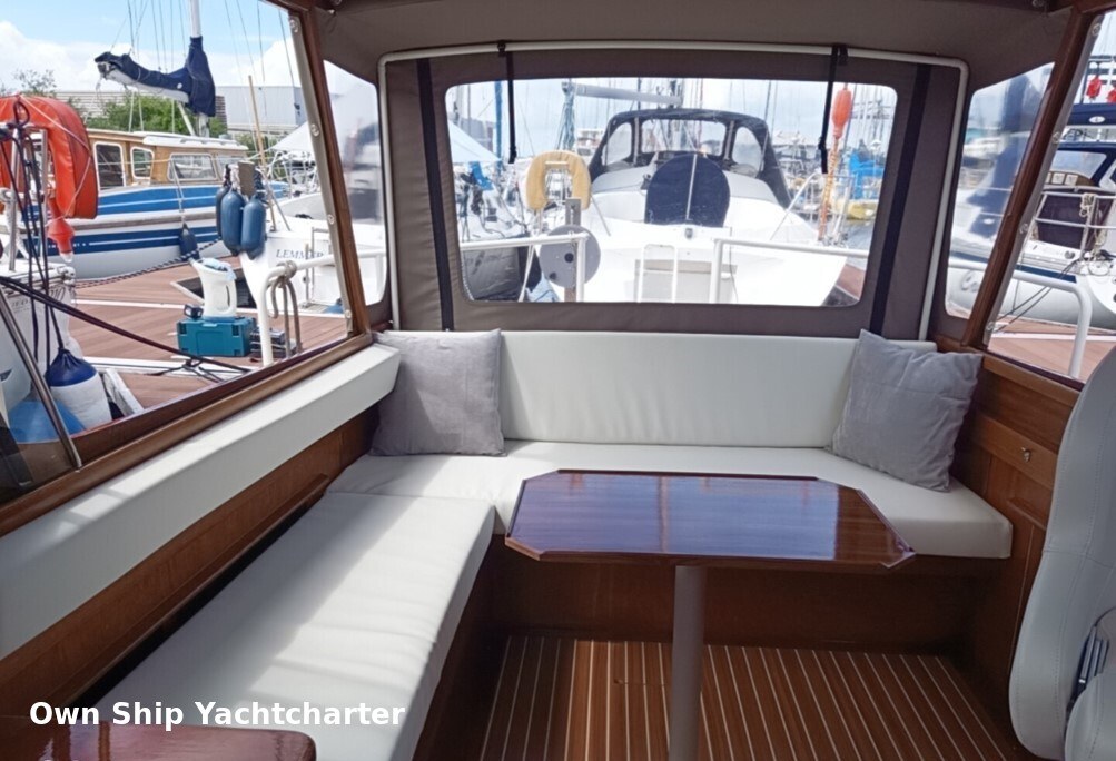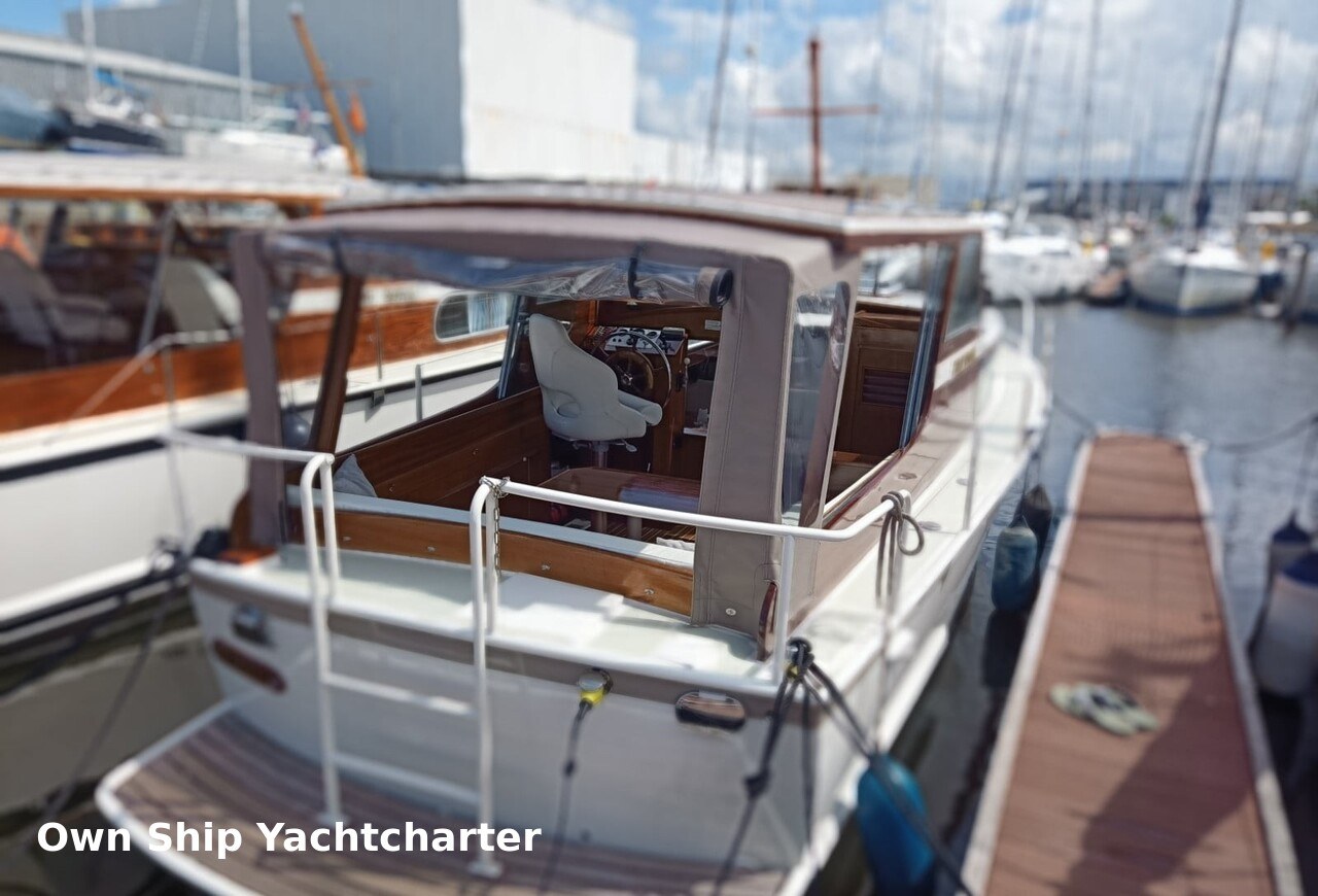 This shipyard-built, classic Super Favorite 860 OK in Warns, for rent at Own Ship yachtcharter, has undergone a complete renovation and is equipped with new equipment. There is heating on board for indoor and outdoor use and an extensive kitchen with a two-burner stove and refrigerator. An electric toilet with a sink with hot / cold water and an outdoor shower on the aft deck. There is also a coffee machine and tv on board. The Super Favorite 860 has a steering in the cockpit and is equipped with a powerful bowthruster. The sailing area are the inland waterways of the Netherlands. Sailing on the IJsselmeer is not allowed, WITH THIS YACHT NO EARLY BOOKING OR LAST MINUTE DISCOUNT IS POSSIBLE.